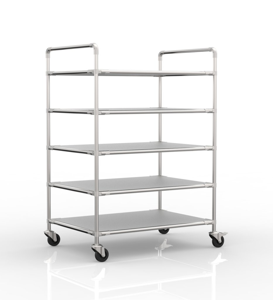 ​​​​​​Antistatický  policový vozík z rúrkového stavebnicového systému je ideálnou voľbou na manipuláciu s tovarom citlivým na celý popis a parametre