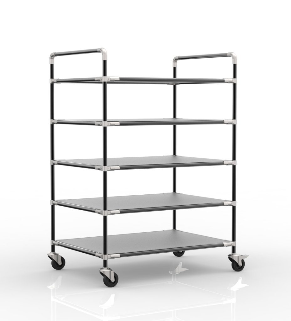 ​​​​​​Antistatický  policový vozík z rúrkového stavebnicového systému je ideálnou voľbou na manipuláciu s tovarom citlivým na celý popis a parametre