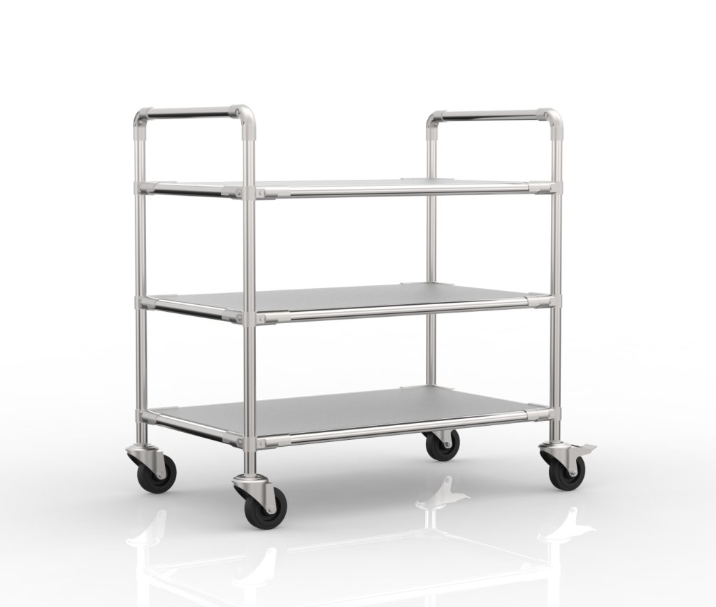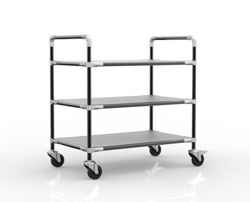 ​​​​​​Antistatický policový vozík z rúrkového stavebnicového systému je ideálnou voľbou na manipuláciu s tovarom citlivým na celý popis a parametre
