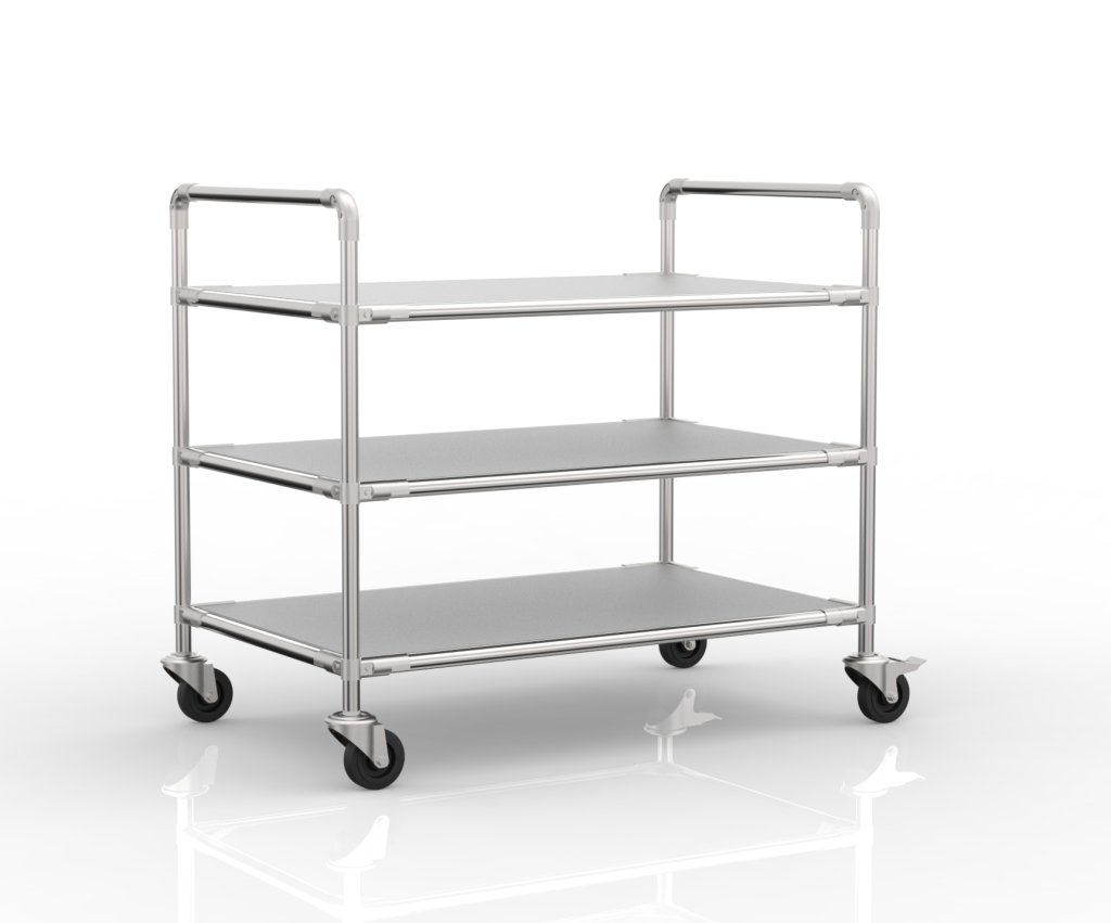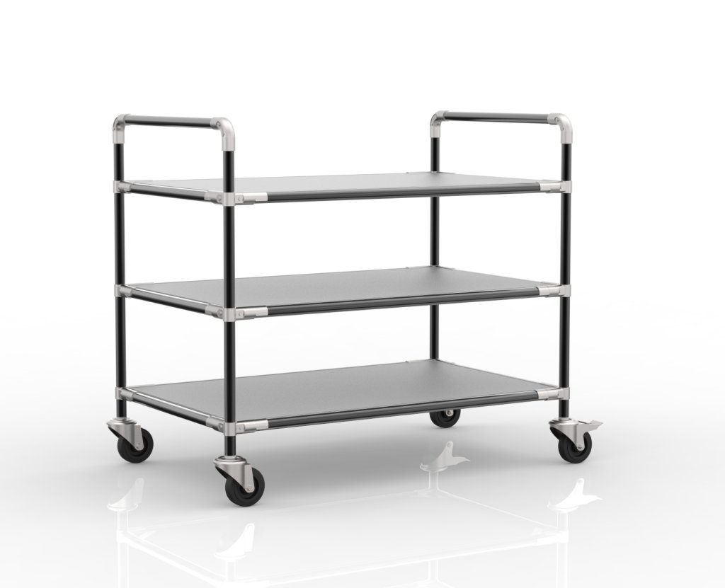 Antistatický policový vozík z rúrkového stavebnicového systému je ideálnou voľbou na manipuláciu s tovarom citlivým na elektrostatický výboj. Súčasťou vozíka je ESD lamino doska s hrúbkou 18 mm. Rozmery 964 x 1068 x 768 mm, priemer kolieska 100 mm.