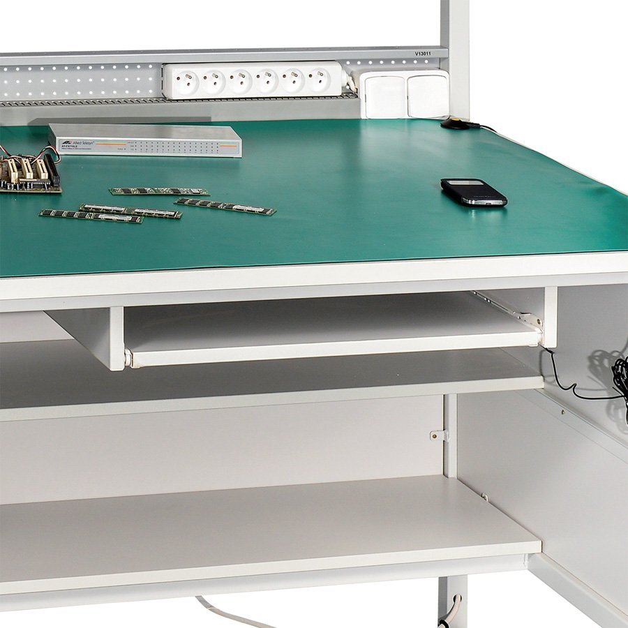 Kancelárska pracovná stolička s polyuretánovými podrúčkami, konštruovaná tak, aby odvázala statickú energiu z pracoviska s prítomnosťou elektronických komponentov a nestálych chemikálií. Všetky súčásti stoličky, vrátane špeciálnej látky a koliesok, sú vodivé, merný odpor menší ako 0,1 MΩ, odtieň potahu - tmavo sivý (antracit), kríž chróm, nosnosť 130 kg. Cena bez podrúčok.