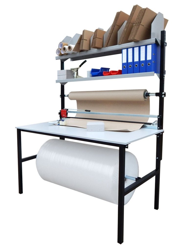Univerzálny baliaci stôl pre kompletizáciu a expedíciu zásielok v baliacich centrách. Rozmery: výška 2220 x šírka 980 x dĺžka 1675 celý popis a parametre