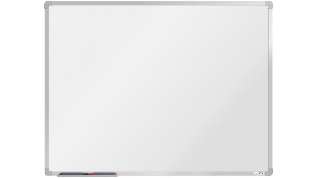 Jednodielna magnetická tabuľa s bielym lakovaným povrchom. Rám z eloxovaného hliníka v prírodnom odtieni, plastové rohy. Súčasťou je odkladacia polička na popisovače. Dodávané vrátane montážnej sady na stenu.