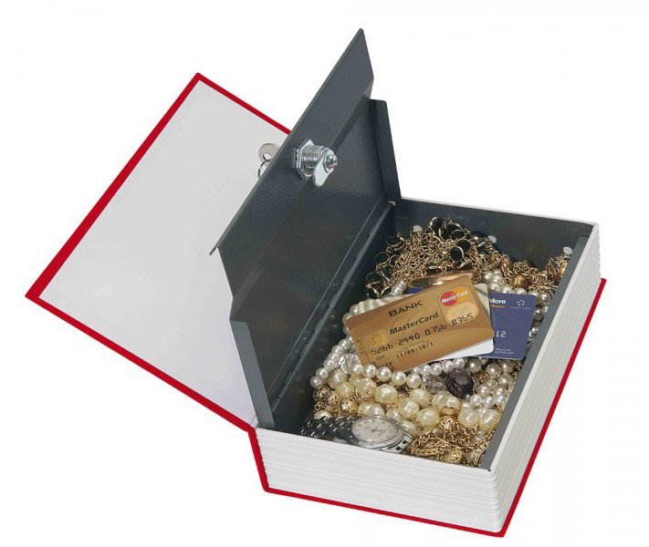 - uzamykateľná príručná pokladnica maskovaná do podoby knihy