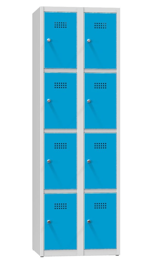 Skriňa s uzamykateľnými boxmi, výška 1850 x šírka 600 x hĺbka 500 mm, cylindrický zámok s jednoduchou závorou alebo uzáver pre visací zámok. Vetracie otvory v dvierkach, svetlosť boxu na výšku 540 mm, priechodzi šírka šatňovej buňky 250 mm.