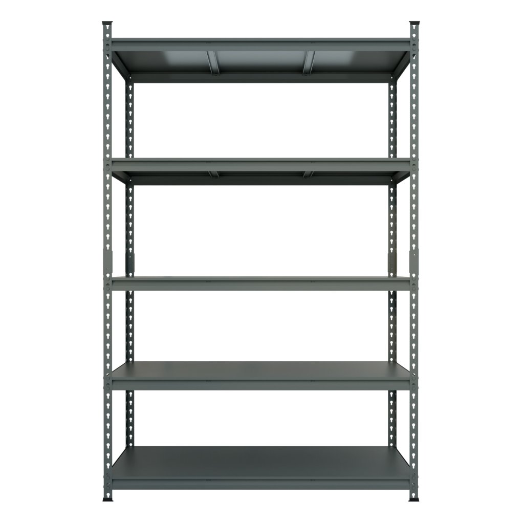 Univerzálny celokovový bezskrutkový regál vhodný do dielní, skladov, kancelárií, garáží či archívov. Vyrobený z kvalitného oceľového plechu, povrchovo upravený sivou práškovou farbou. 5x prestaviteľná polica s výstuhou. Nosnosť police 150 kg. Rozmery regálu (v x š x hl.) 1830 x 1200 x 500 mm. Dodávaný demontovaný.