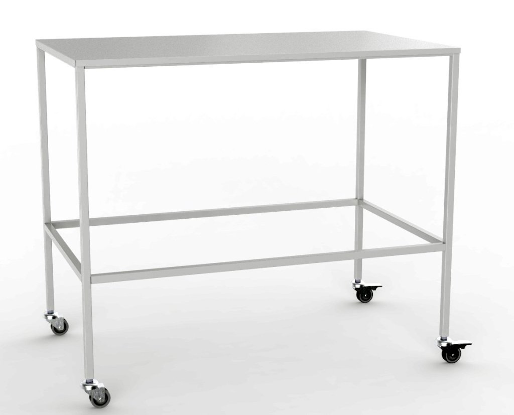 Chirurgický stôl je vyrobený z plechu hrúbky 0,8 mm. Výška 880 mm, šírka 1400 mm, hĺbka 600 mm. Priestranná doska stola umožňuje uloženie veľkého množstva prístrojov a nástrojov. Ľahkú manipuláciu zaisťujú 4 otočné kolieska, z ktorých 2 sú s brzdou.