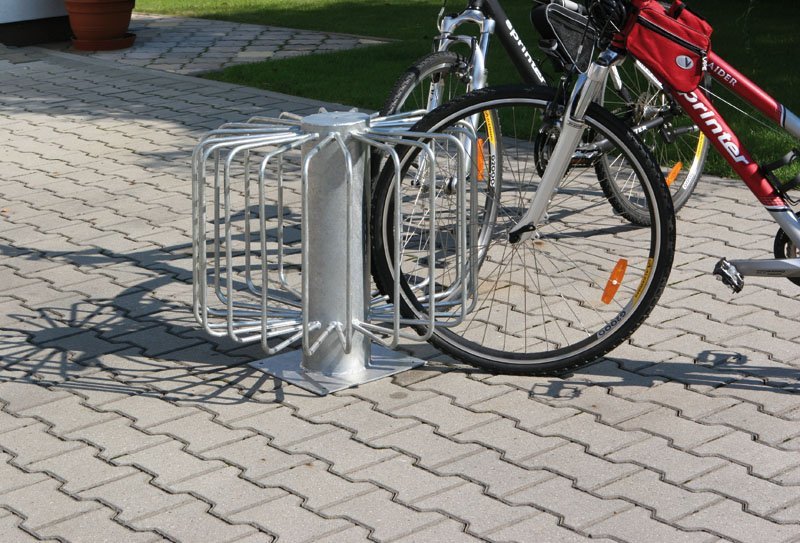 Stojan na bicykle použiteľný pre všetky typy bicyklov so všetkými štandardnými rozmermi plášťov. Nosné časti stojanov sú vyrobené z oceľových profilov odolných k nešetrnému zaobchádzaniu. Je vhodný pre postavenie do priestoru a pre väčší počet bicyklov - až 10.