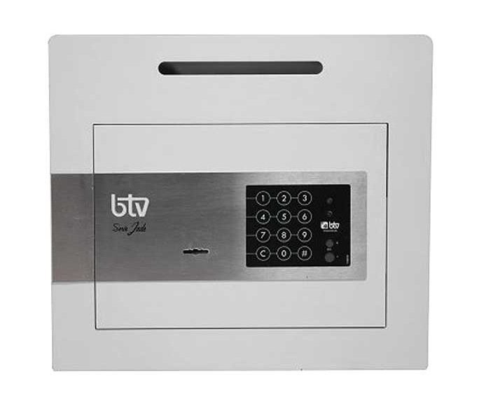 Špeciálny elektronický sejf s vhozom vo dverách sejfu. Veľmi vhodný pre firmu, kde zamestnanci nemajú prístup do sejfu a hotovosť vhazujú úzkym otvorom. Výška 310 x šírka 350 x hĺbka 300 mm, núdzový kľúč, kód s možnosťou 2-15 čísel, možnosť časového oneskorenia otvorenia sejfu až na 99 minút.