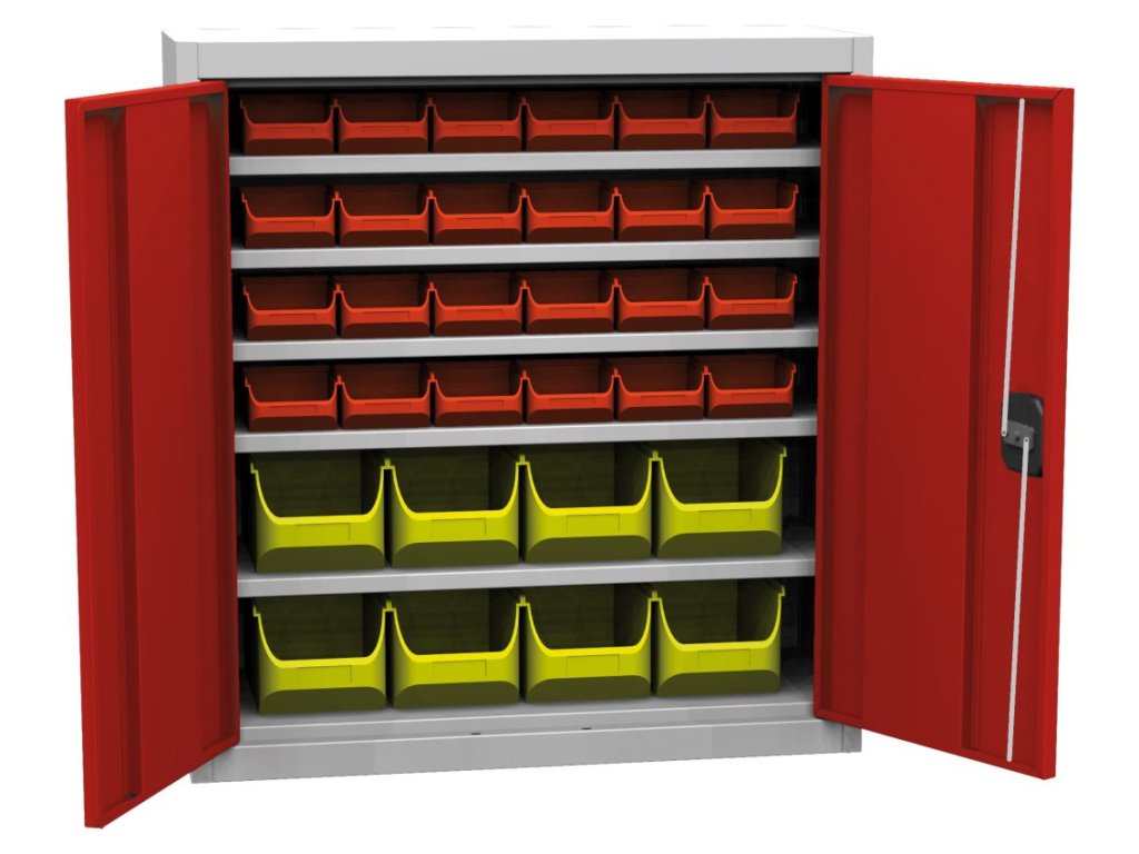 Dvojdverová dielenská skriňa, šírka 750, výška 800, hĺbka 300 mm. 5x polica. Možnosť náhrady plných dverí dverami so sklenenou celý popis a parametre