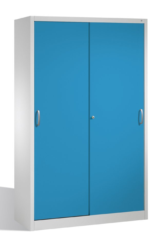 Dielenská skriňa s odolnou oceľovou konštrukciou a posuvnými dverami. 4x prestaviteľná pozinkovaná police. Nosnosť 70 kg/polica. Farba korpusu svetlo sivá RAL 7035, farba dverí podľa výberu. Cylindrický bezpečnostný zámok. Rozmery v mm (V x Š x H) 1950 x 1200 x 600.
