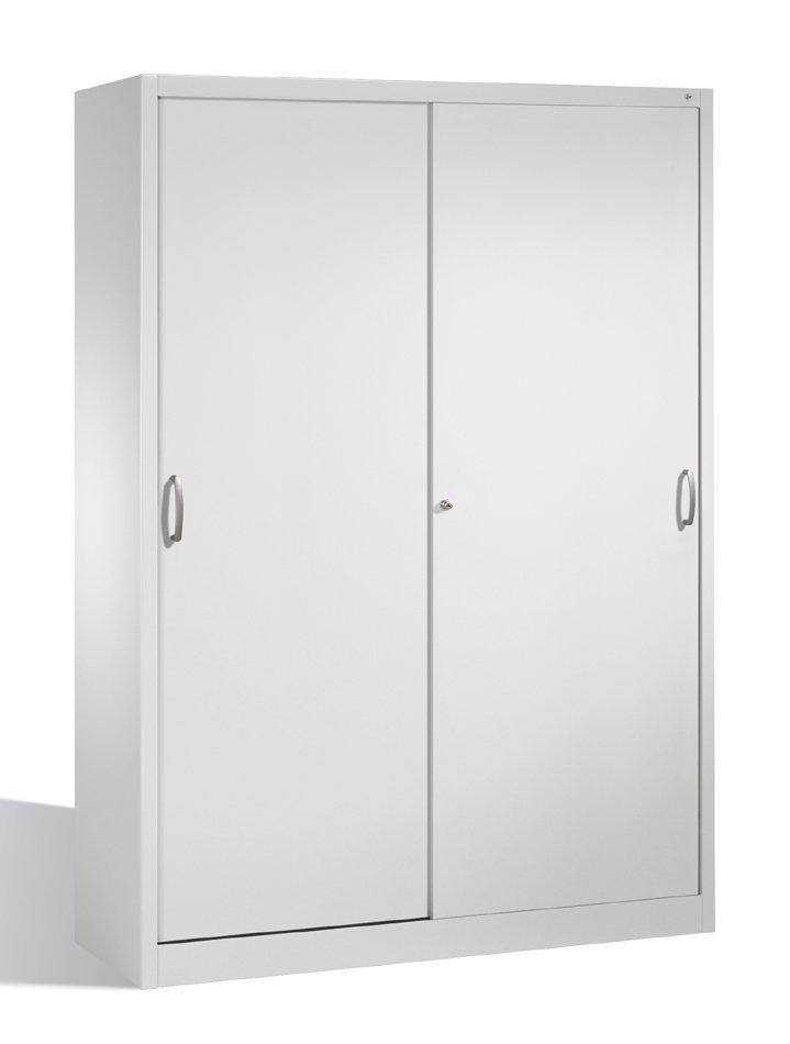 Dielenská skriňa s odolnou oceľovou konštrukciou a posuvnými dverami. 8x prestaviteľná pozinkovaná police. Nosnosť 70 kg/polica. Uprostred priečka. Farba korpusu svetlo sivá RAL 7035, farba dverí podľa výberu. Cylindrický bezpečnostný zámok. Rozmery v mm (V x Š x H) 1950 x 1600 x 600.