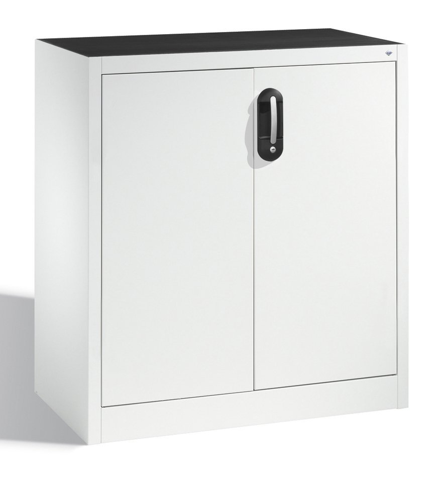 Skriňa s krídlovými dverami, plné dvierka s výztuhami pre perfo, nosnosť 300 kg. Výška 1000 x šírka 1044 x hĺbka 405 mm.