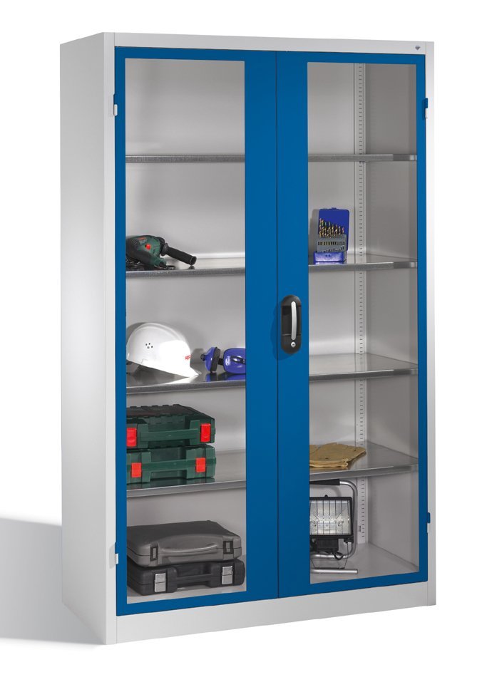Dielenská skriňa s odolnou oceľovou konštrukciou a oceľovými dverami s výplňou z akrylového skla. 4x prestaviteľná pozinkovaná celý popis a parametre