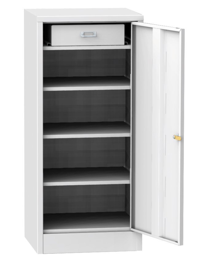 Dielenská skrinka na náradie šírka 450, výška 1030, hĺbka 400 mm. S gumou na hornej ploche a okrajom proti prepadávaniu predmetov. Farba korpusu RAL 7035 svetlosivá.