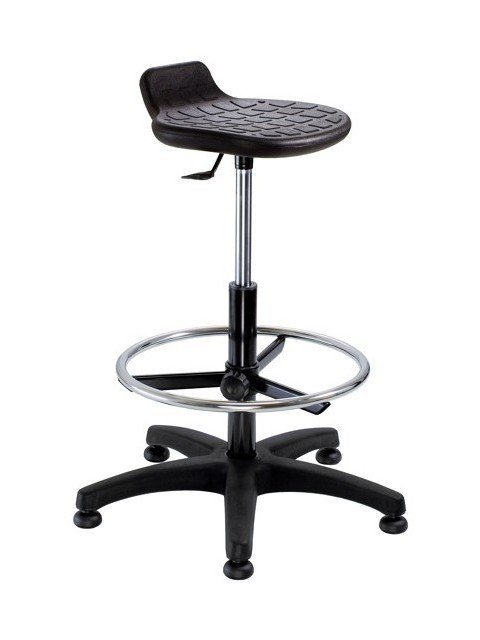 Jednoduchá polyuretánová pracovná stolička s plynovým piestom k nastaveniu výšky sedadla.