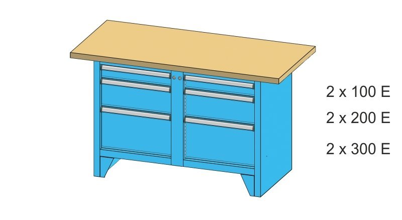Dielenský stôl, rozmer dosky 2000 x 700 x 40 mm, rozmer korpusu 1796 x 600 x 840 mm. Pracovná doska škárovka buk hrúbky 40 mm alebo buk multiplex (označenie M - vrstvená buková dyha) - hrúbka 40 mm. Nosnosť stola 800 kg.