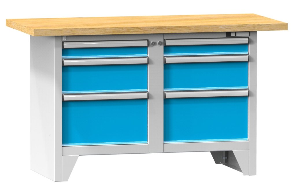 Dielenský stôl, rozmer dosky 1500 x 700 x 40 mm, rozmer korpusu 1198 x 600 x 840 mm. Pracovná doska škárovka buk hrúbky 40 mm alebo buk multiplex (označenie M - vrstvená buková dyha) - hrúbka 40 mm. Nosnosť stola 800 kg.