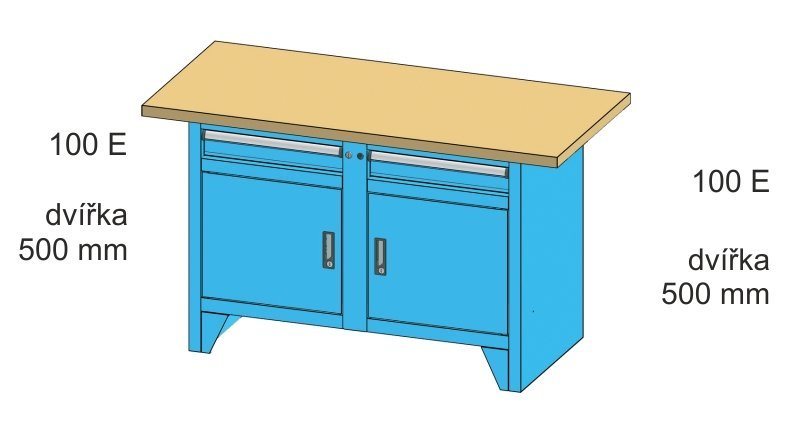 Dielenský stôl, rozmer dosky 1500 x 700 x 40 mm, rozmer korpusu 1198 x 600 x 840 mm. Pracovná doska škárovka buk hrúbky 40 mm alebo buk multiplex (označenie M - vrstvená buková dyha) - hrúbka 40 mm. Nosnosť stola 800 kg.