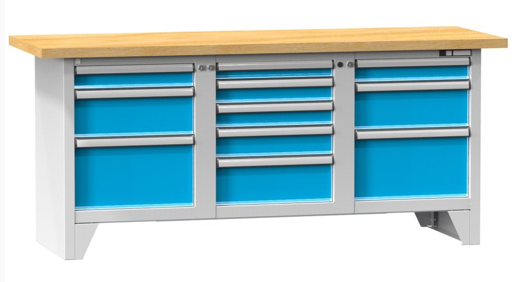 Dielenský stôl, rozmer dosky 2000 x 700 x 40 mm, rozmer korpusu 1796 x 600 x 840 mm. Pracovná doska škárovka buk hrúbky 40 mm alebo buk multiplex (označenie M - vrstvená buková dyha) - hrúbka 40 mm. Nosnosť stola 800 kg.