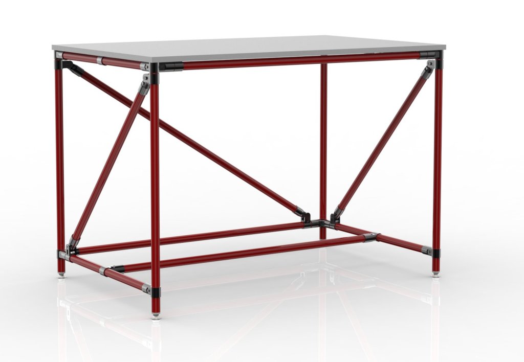 Montážny stôl z trubkového konštrukčného systému s pracovnou laminátovou doskou s hrúbkou 18 mm a štyrmi nastaviteľnými nožičkami. celý popis a parametre