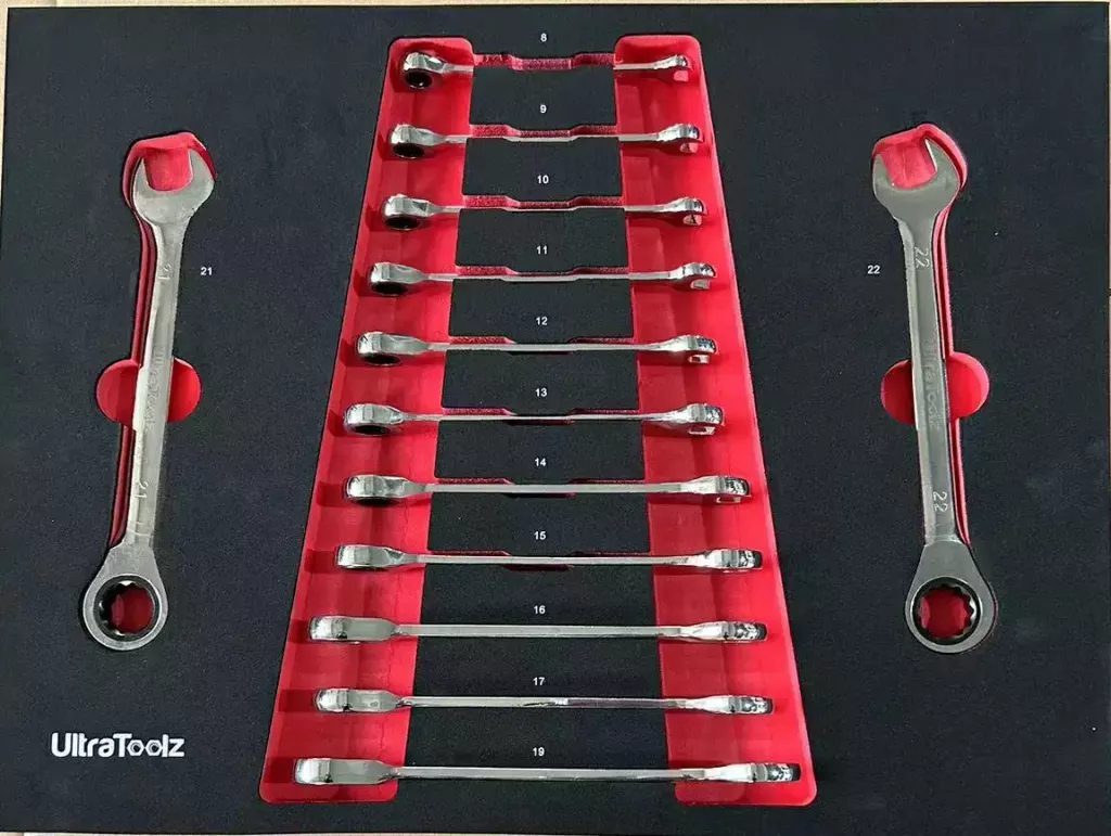 • 15 ks račňové očkoploché kľúče - 8, 10, 11, 12, 13, 14, 15, 16 ,17, 19, 21, 22, 24, 27, 30 mm