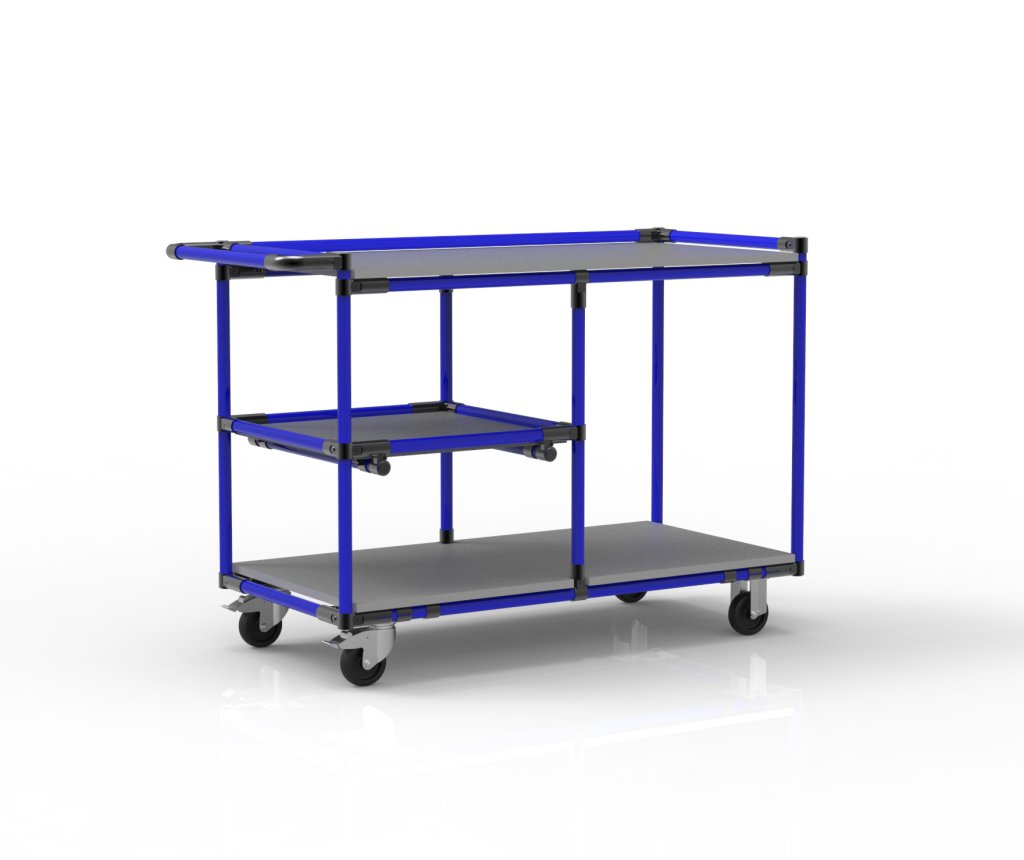 Dielenský pracovný vozík vyrobený z trubkového stavebnicového systému. Tento vozík je vybavený doskou z laminovanej drevotriesky s celý popis a parametre