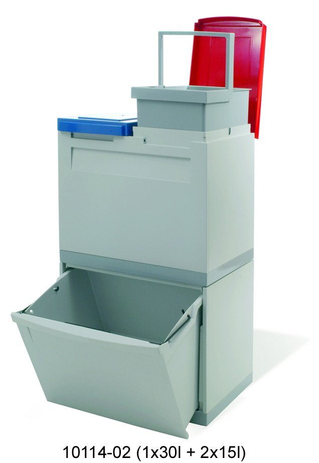 Flexibilné a variabilné. Sektorový princíp umožňuje vytvárať rôzne zostavy. Moduly položené na sebe sú kvôli stabilite vzájomne fixované. Vnútorné koše (objem 15l) možno ľahko vybrať, vyprázdniť a vyčistiť. Moduly možno doplniť o kolieska.