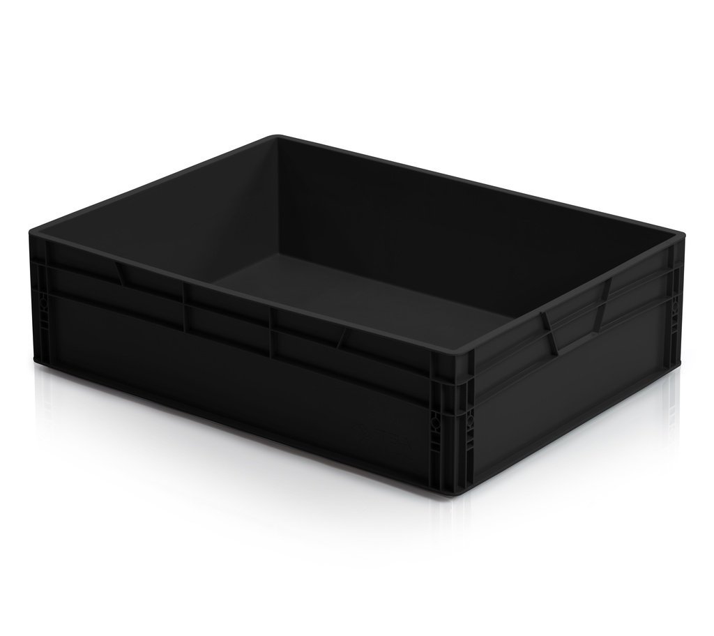 ESD Euro prepravka je jednoducho stohovateľná. Zamedzuje vzniku elektrostatického náboja. Spec. prietokový odpor / povrchový odpor celý popis a parametre