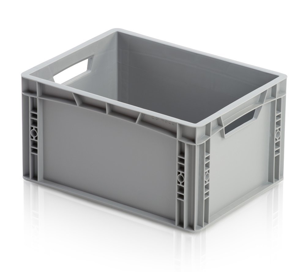 Euro prepravka je hygienická, jednoducho stohovateľná s využitím pre dopravu a skladovanie. Odolná voči chladu a kontaktnému teplu, proti kyselinám a lúhom. Celkové rozmery (V x Š x H) v mm 220 x 400 x 300. Objem 20 l. Na výber plný alebo otvorený úchyt.