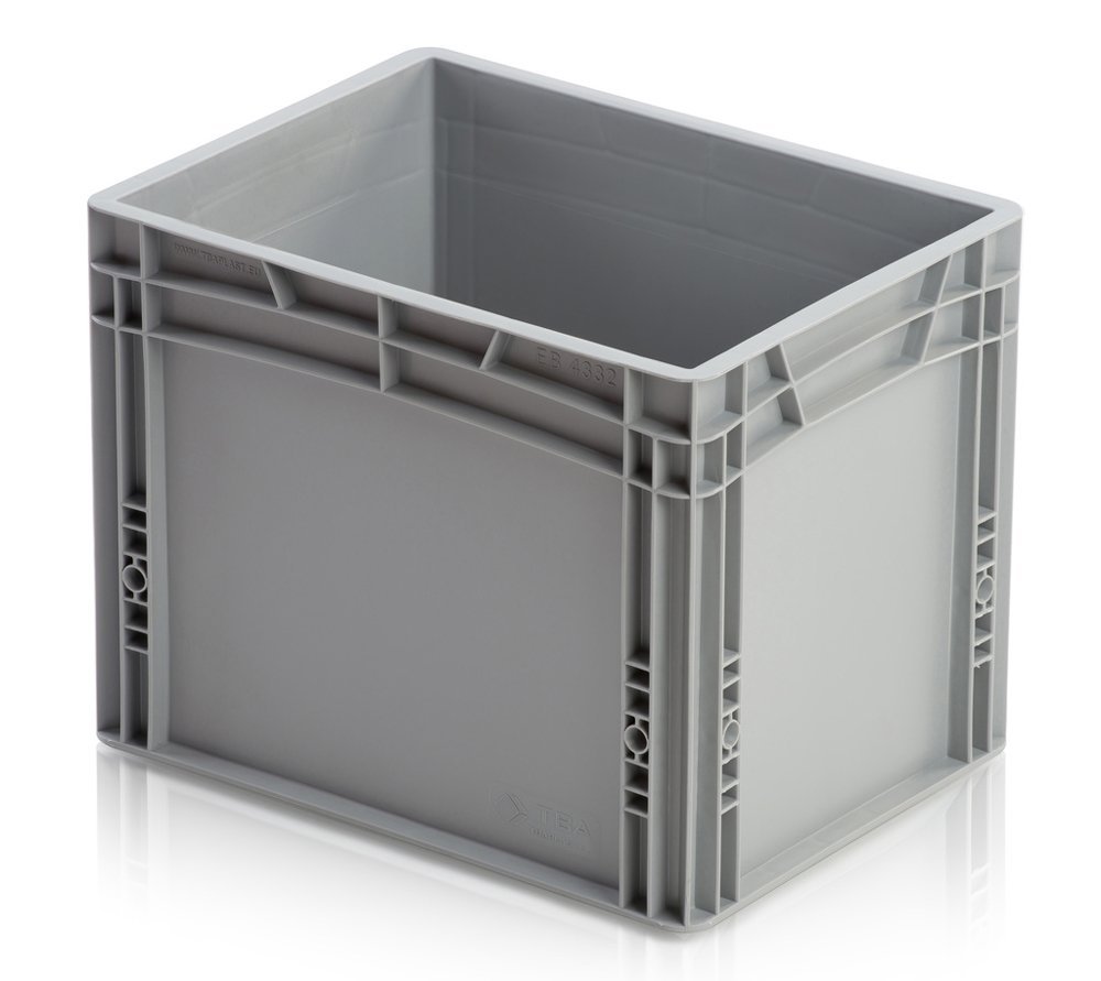 Stohovateľná Euro prepravka vhodná na dlhodobé skladovanie aj do výroby. Je stabilná počas prepravy a kompatibilná s Euro paletami. Má plné dno a steny s uzavretými rukoväťami. Farba sivá. Objem 54 l.