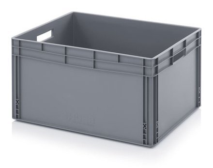 Stohovateľná Euro prepravka vhodná na dlhodobé skladovanie aj do výroby. Je stabilná počas prepravy a kompatibilná s Euro paletami. Má plné dno a steny s uzavretými rukoväťami. Farba sivá. Objem 67 l.