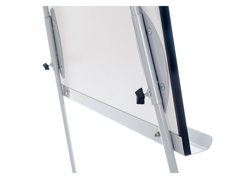 Biela lakovaná magnetická tabuľa na trojnožke. Tabuľa je výškovo staviteľná. Rozmer 100 x 150 cm. Dodávané vrátane odkladacej lišty na popisovače, lišty na upevnenie papierových blokov a ramien pre zavesenie papierových hárkov.
