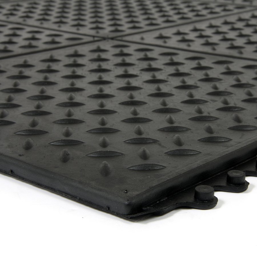 Modulárna gumová rohožka s povrchovou textúrou "Kotlářský plech" je ideálny pre zostavenie gumové podlahy ľubovoľnej veľkosti vhodné do športového strediska, ale aj do garáže či domáce dielne, výroby. Vďaka svojmu povrchu má skvelé protišmykové vlastnosti, absorbuje otrasy spôsobené nárazmi predmetov či topánok a znižuje hlučnosť, pôsobí protiúnavovo, izoluje od studenej podlahy. Pomocou spojenie jednotlivých modulov možno vytvoriť gumovou podlahu ľubovoľnej veľkosti. Zakončenie podlahy docielite odrezaním zámkov - samcov. V prípade potreby možno jednotlivé moduly jednoducho rozdeliť a premiestniť (pozor na moduly s odrezanými zámky, tie už nemožno napojiť, budú vždy okrajové moduly).