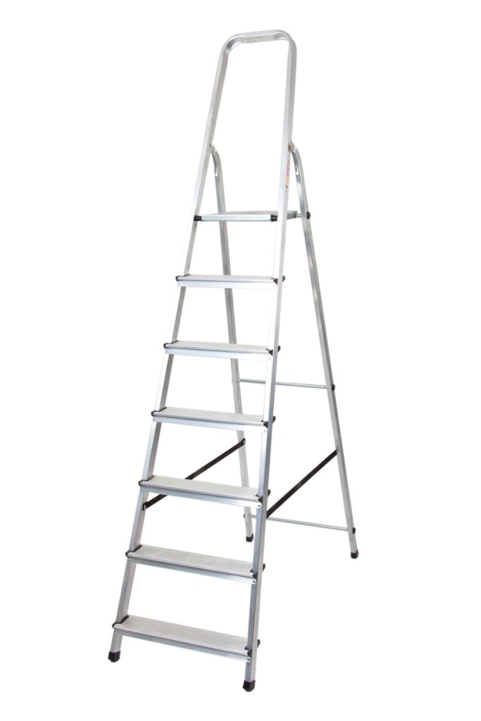 Schodíky hliníkové obojstranné Eurostyl, počet nášľapov 2x7, maximálna výška 1,46 m, šírka 509 mm. Nosnosť 150 kg.