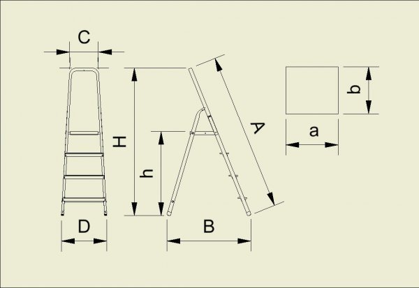 Schodíky hliníkové jednostranné Eurostyl, počet nášľapov vrátane plošinky 1x3, rozmery plošinky 264 x 262 mm, maximálna výška plošinky 0,59 m, šírka schodíkov 412 mm. Nosnosť 150 kg.