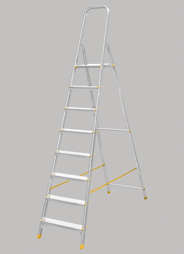 Schodíky hliníkové obojstranné Eurostyl, počet nášľapov 2x8, maximálna výška 1,67 m, šírka 533 mm. Nosnosť 150 kg.