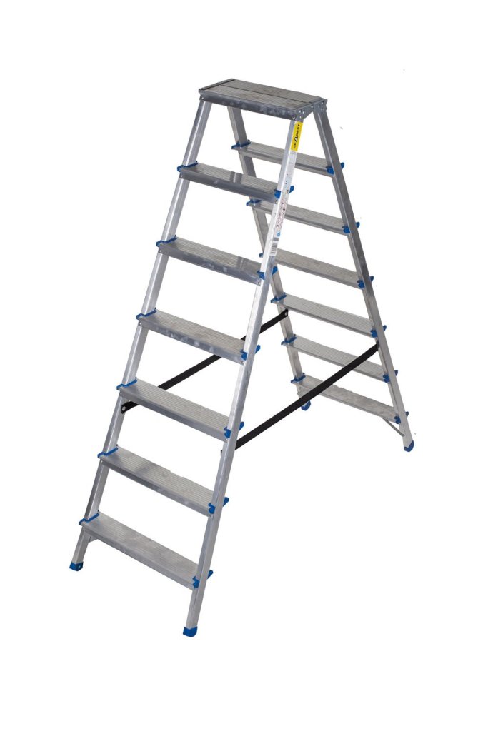 Schodíky hliníkové obojstranné Eurostyl, počet nášľapov 2x7, maximálna výška 1,46 m, šírka 509 mm. Nosnosť 150 kg.