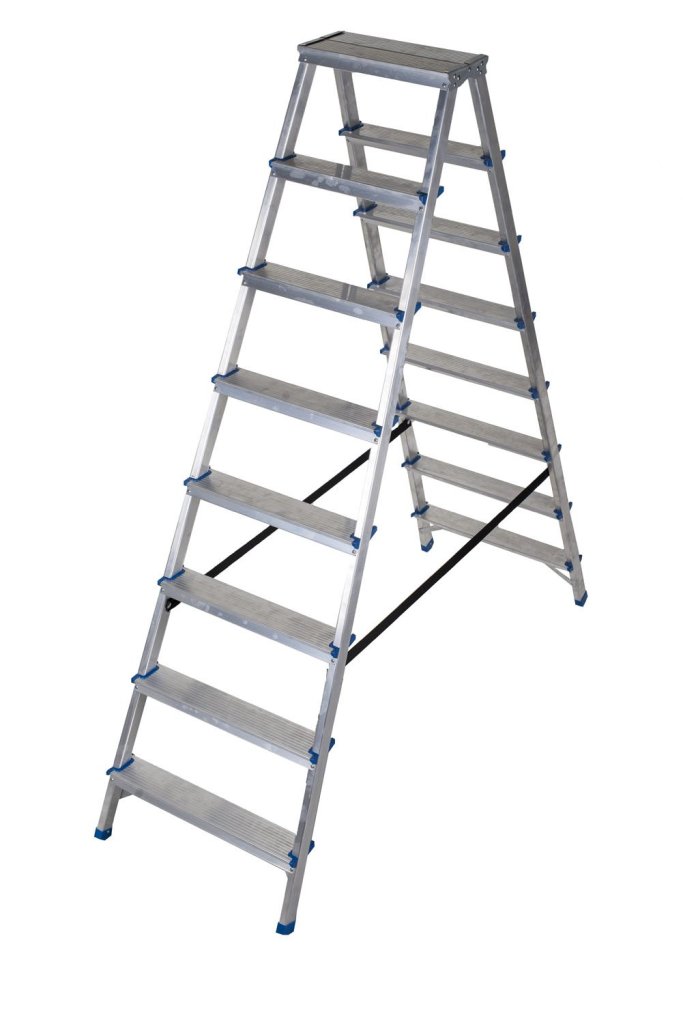 Schodíky hliníkové obojstranné Eurostyl, počet nášľapov 2x5, maximálna výška 1,03 m, šírka 461 mm. Nosnosť 150 kg.
