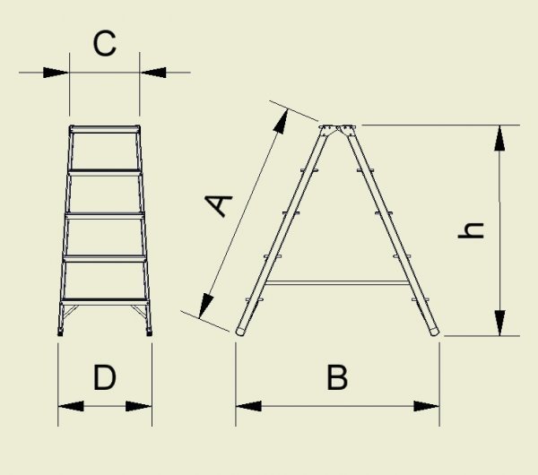 Schodíky hliníkové obojstranné Eurostyl, počet nášľapov 2x5, maximálna výška 1,03 m, šírka 461 mm. Nosnosť 150 kg.
