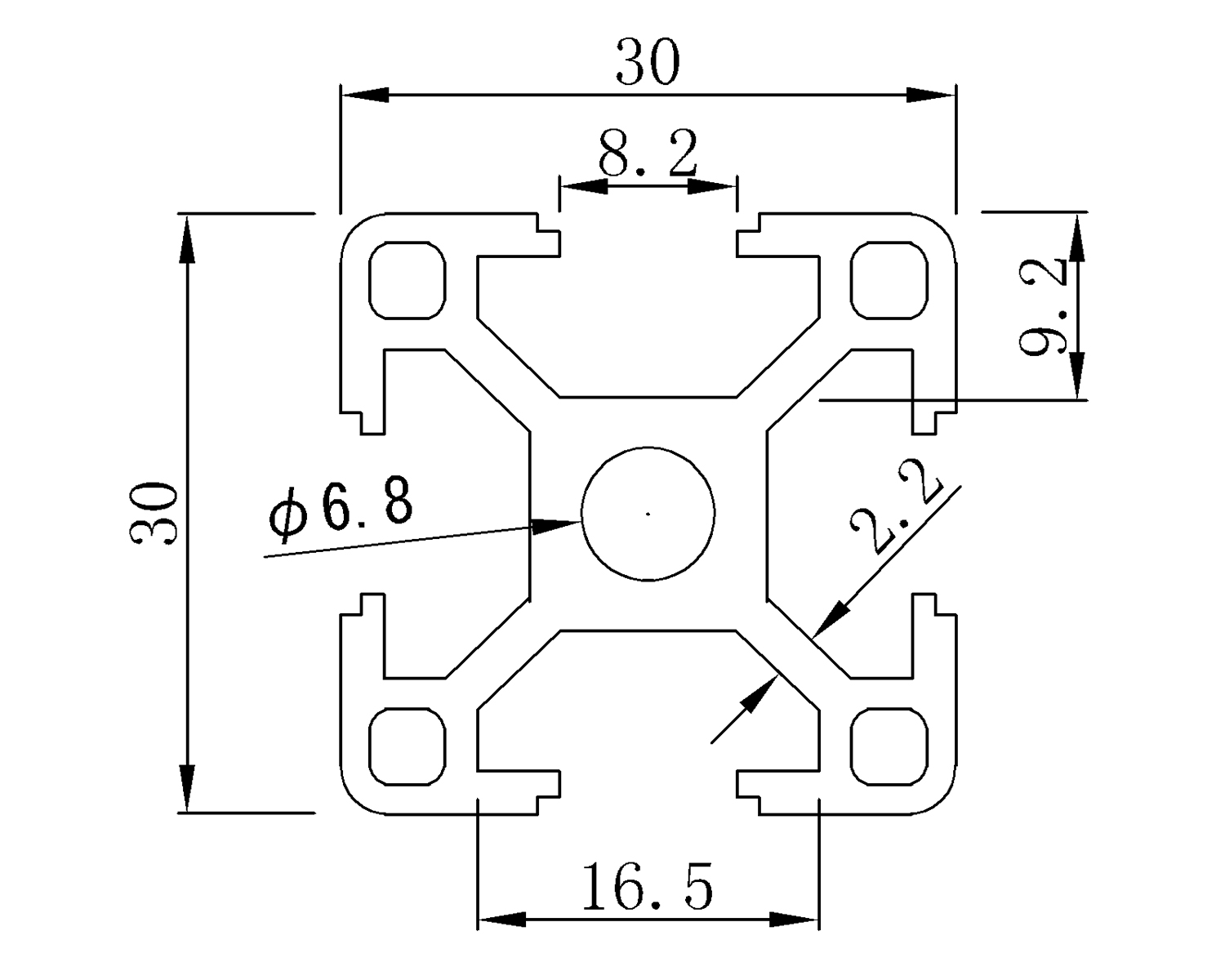 Hliníkový profil s rozmermi 30 x 30 mm. Cena je uvedená za 1 m. Maximálna dĺžka jedného profilu je 4 m.