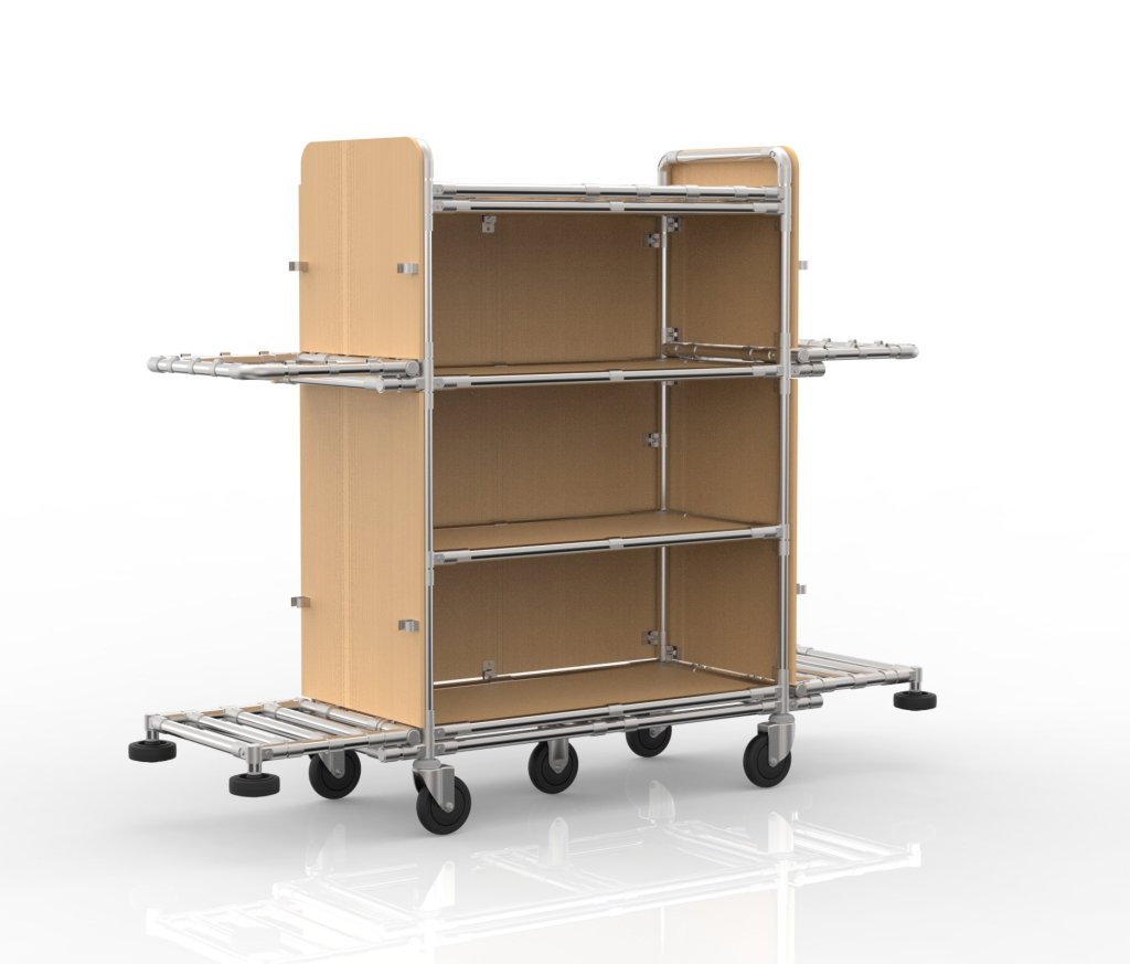Hotelový upratovací vozík na mieru ponúka dostatok priestoru na uskladnenie čistiacich prostriedkov, uterákov a ďalších nevyhnutností. Navyše vďaka odolnej a ľahkej konštrukcii uľahčuje pohyb v úzkych chodbách. Možné rôzne farebné kombinácie konštrukcie vrátane rôznych lamino dosiek. Nosnosť poschodia 50 kg, celková nosnosť 200 kg. Rozmery 1429 x 1841 x 483 mm.