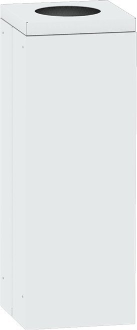 Hranatý stabilný kôš vhodný pre triedenie odpadu. Výška 700 x šírka 295 x hĺbka 295 mm, objem 57 l. Farba koša svetlosivá RAL 7035, veko s kruhovým vhozom o ø 200 mm v rôznych farbách pre rozlíšenie druhu odpadu. Len pre vnútorné použitie.