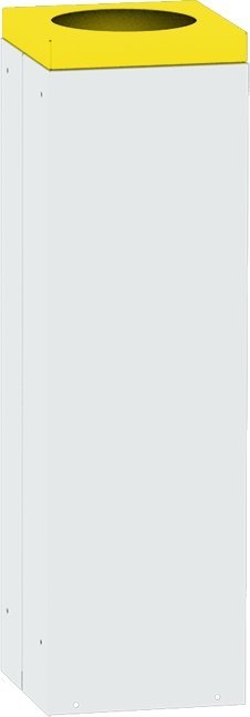 Hranatý stabilný kôš vhodný pre triedenie odpadu. Výška 700 x šírka 255 x hĺbka 255 mm, objem 42 l. Farba koša svetlosivá RAL 7035, veko s kruhovým vhozom o ø 150 mm v rôznych farbách pre rozlíšenie druhu odpadu. Len pre vnútorné použitie.