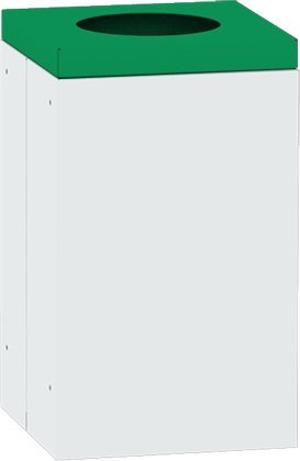 Hranatý stabilný kôš vhodný pre triedenie odpadu. Výška 700 x šírka 210 x hĺbka 210 mm, objem 28 l. Farba koša svetlosivá RAL 7035, veko s kruhovým vhozom o ø 150 mm v rôznych farbách pre rozlíšenie druhu odpadu. Len pre vnútorné použitie.