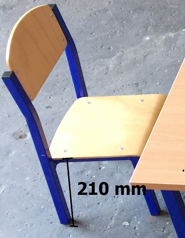 | Veľkosť | Výška sezení (stoličky) | Výška lavice / stola | Výška postavy |