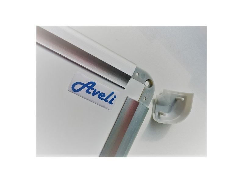 Jednodielna magnetická tabuľa s lesklým keramický povrchom a hliníkovým eloxovaným rámom (zaoblené hrany). Povrch tabule je celý popis a parametre