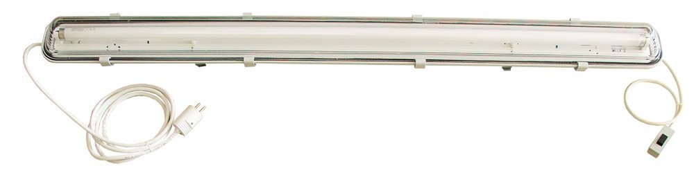 Dvojtrubicové svietidlo s vypínačom, šírka 1300 mm, výška 150 mm, hĺbka 200 mm, príkon 2 x 18W. Súčasťou balenia sú montážne prvky.