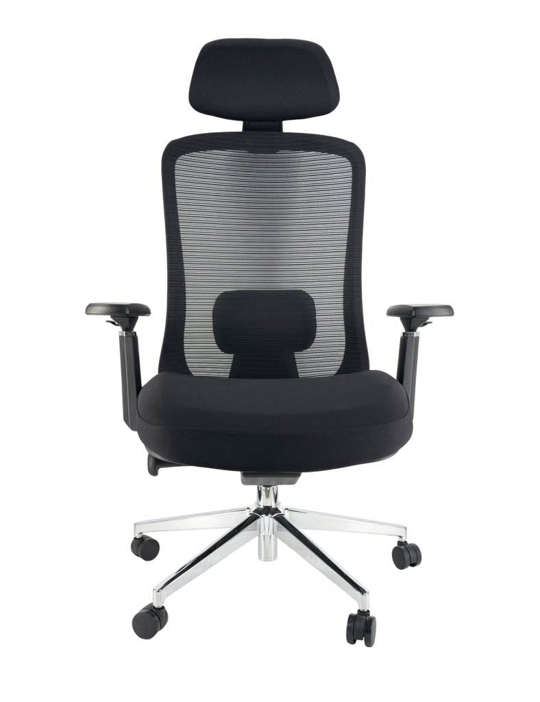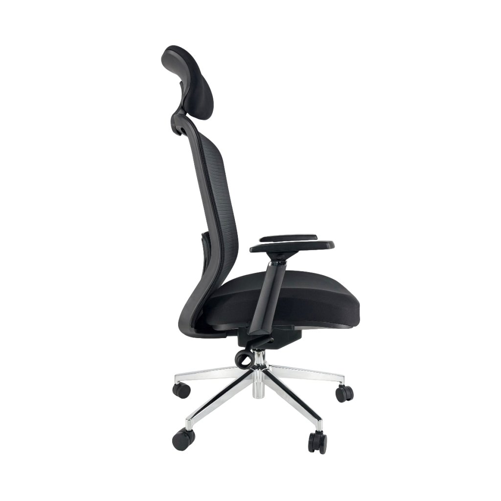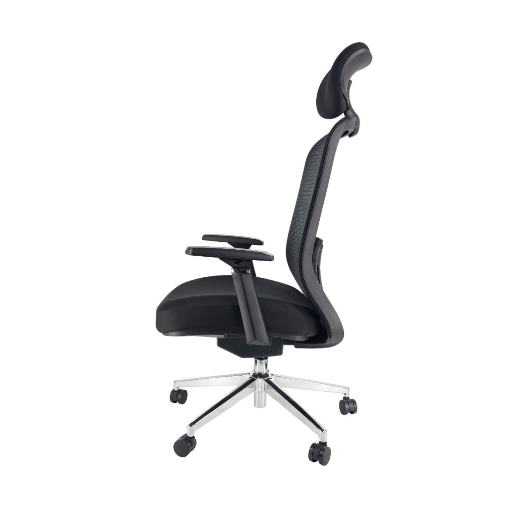 Ergonomická kancelárska stolička ponúka vysoký komfort sedenia a široké možnosti individuálneho nastavenia. Vďaka výškovo nastaviteľnej bedrovej opierke, nastaviteľným podrúčkam a opierke hlavy sa ľahko prispôsobí každému používateľovi. Synchro mechanizmus podporuje dynamické sedenie a fixný sieťovaný operadlo zabezpečuje optimálnu priedušnosť počas celého dňa. Robustná konštrukcia s nosnosťou 200 kg a čiernym chrómovaným krížom zaručuje dlhú životnosť a stabilitu. Široký a pohodlný sedák poskytuje dostatok priestoru aj pri dlhšom sedení.