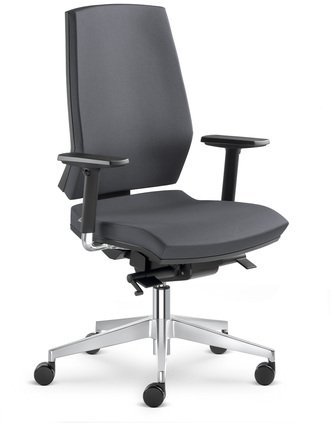Kanceláska stolička otočná, vysoké operadlo výškovo nastaviteľné, synchrónna mechanika SYS s bočným nastavením tuhosti operadla, kríž nylon čierny, kolieska 60 mm, plynový piest, cena bez podrúčok.
